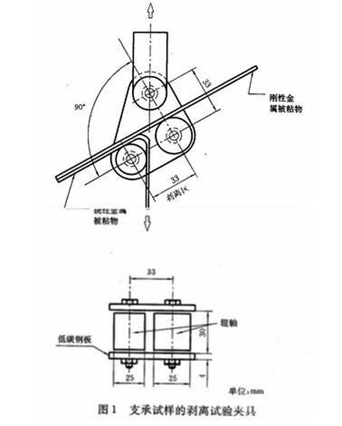 剝離強(qiáng)度:在規(guī)定的試驗(yàn)條件下,測(cè)量兩個(gè)相互膠接的金屬被粘物的試樣沿著膠接線逐漸分離的單位寬度上所需的平均力,以 kN/m表示。